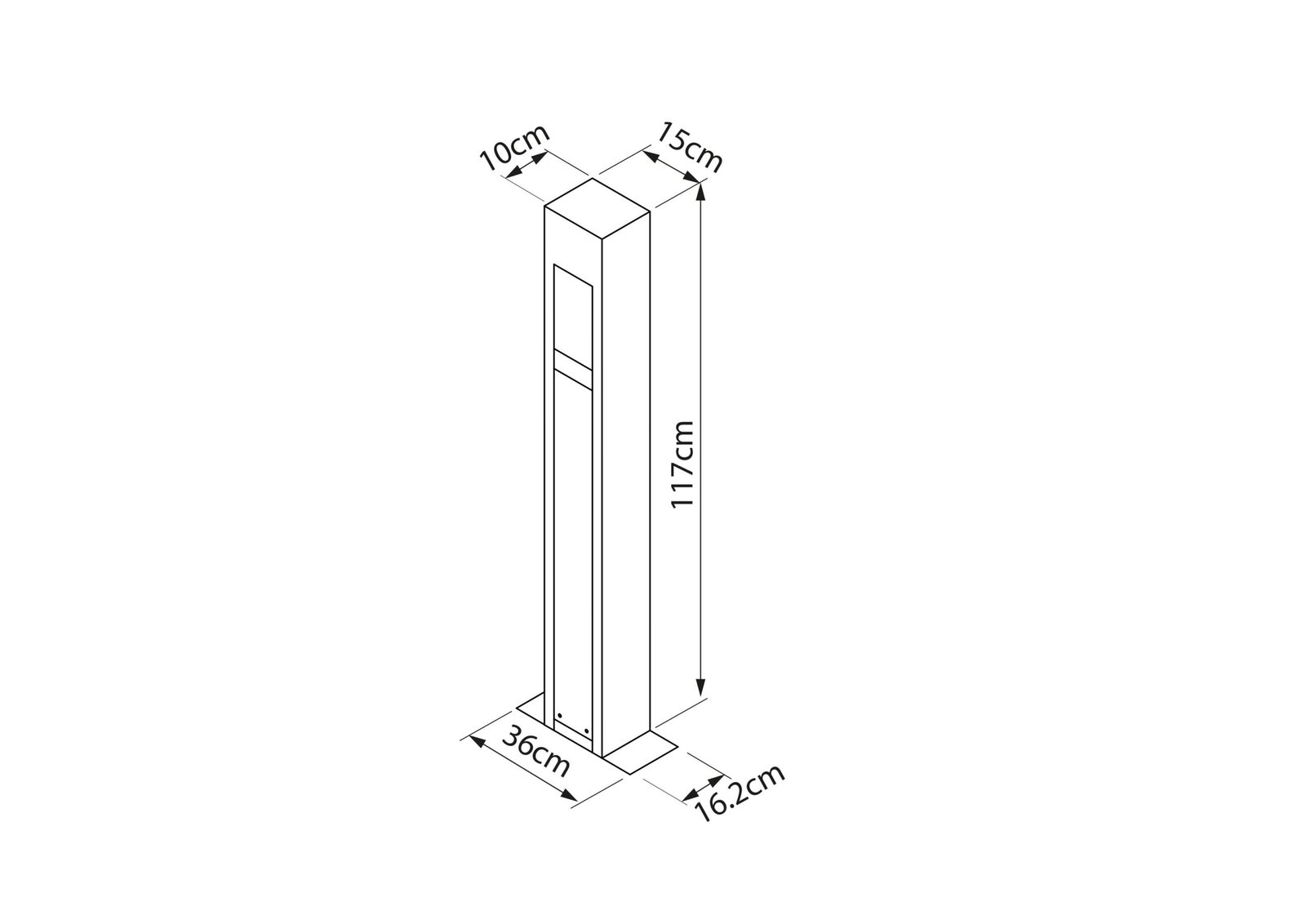 • Matmenys: Plotis: 15 cm, aukštis: 117 cm, gylis: 10 cm