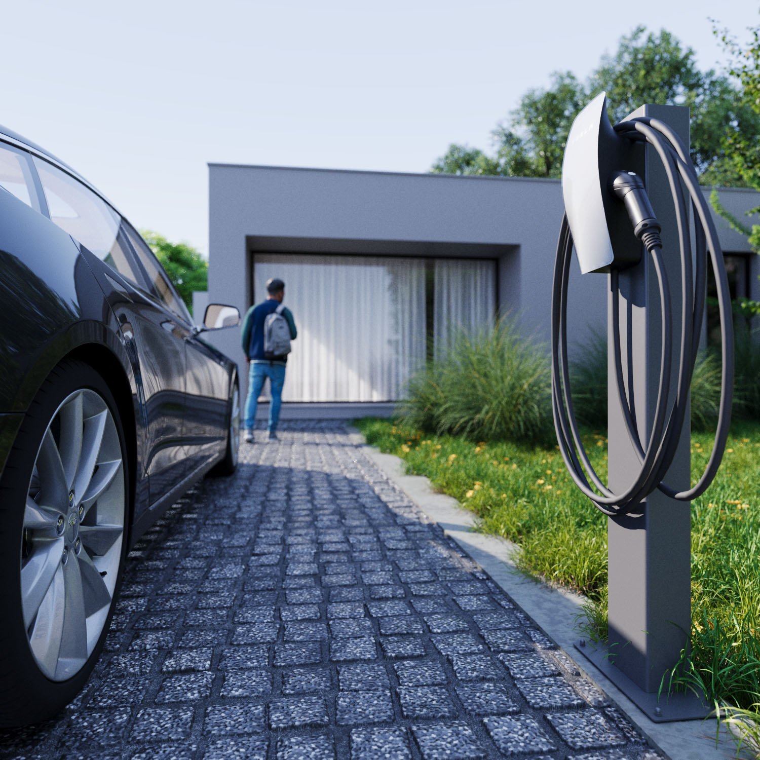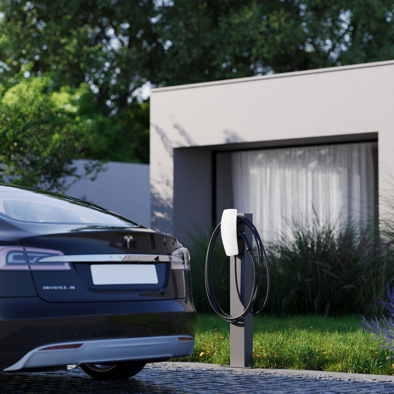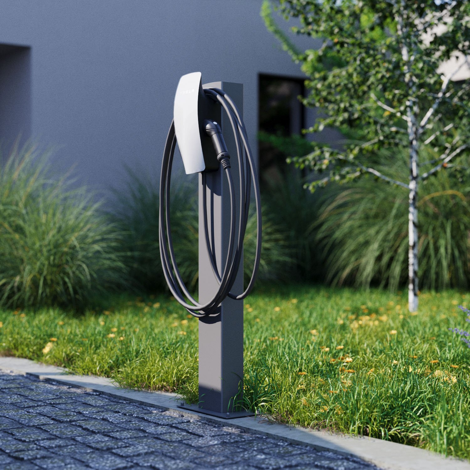 Elegantiškas dizainas: stulpelis harmoningai įsilieja į bet kokią aplinką ir puikiai dera su jūsų “Tesla Wallbox”.